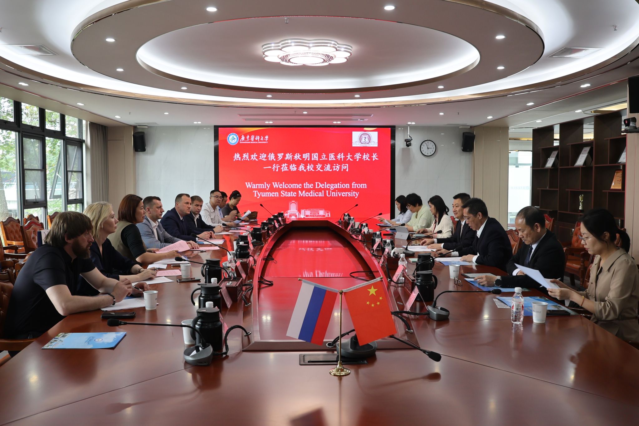 石明副校长首先代表学校对Петров Иван校长一行的到来表示热烈欢迎,并简要介绍了我校历史沿革、办学理念、学科特色及近年来发展成效。石明指出,我校高度重视与俄罗斯高校的交流合作。俄罗斯教育体系完善、教育资源丰富,学术氛围浓厚、学位制度多样、学科门类齐全、办学水平在国际上享有盛誉。秋明国立医科大学办学历史悠久,师资队伍雄厚,所培养的学生基础理论扎实、实践能力突出,科研和创新意识强。愿双方未来在师生流动、人才培养、学术交流等方面加强合作、增进友谊,以校际合作促进两校国际化办学高质量发展。