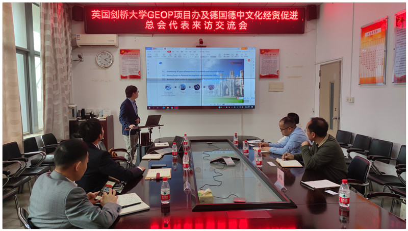 4月6日,英国剑桥大学GEOP项目副主任曾旻昱、德国德中文化经贸促进总会副会长谢琳璘等一行四人来我校东莞校区交流访问。学校卢景辉书记校长、邝卫红副校长,党委办公室王辉群主任、国际合作与交流处郭绍波处长、药学院鲁澄宇院长等出席了本次交流活动。